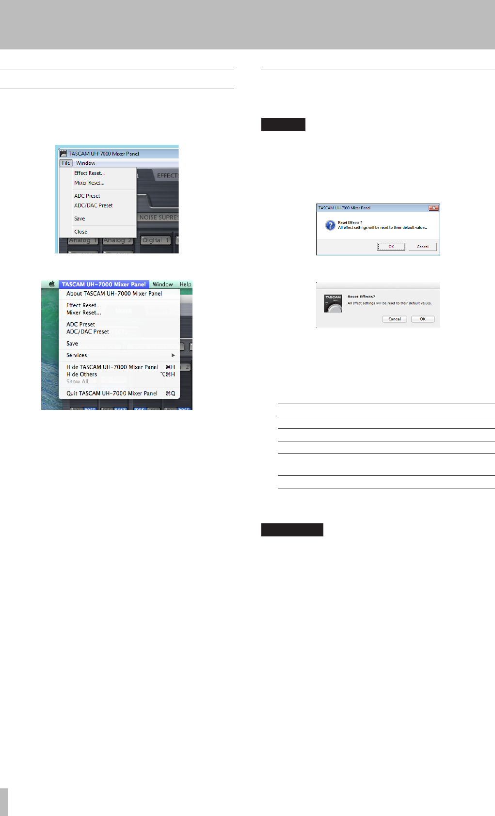 UH-7000 Mixer Panel (Mac) und dann Effect Reset….