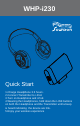 WHP-210 WHP-i230 Quick Start 1.Charge Headphone 3.5 hours. 2.Connect Transmitter to i-Pod. 3.Turn on Headphone and i-Pod. 4.Wearing the Headphones, hold down the LINK buttons on both the Headphone and the Transmitter until a beep is heard indicating the device are link. 5.