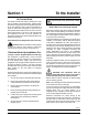Table of Contents ______________________________________________________________________________ Section 1 To the Installer . . . . . . . . . . . . . . . . . . . . . . . . . . . . . . . . . . . . . . . . . . . . Air Cooled Units . . . . . . . . . . . . . . . . . . . . . . . . . . . . . . . . . . . . . . . . . . . . . . . . . . . . . . . Electrical Hook-Up Installation for 60 Cycle, 1 Phase, Supplied With Cord and Plug . . . . . . . . . . . . . . . . . . . . . . . . . . . . . . . . . . . . . . . . . . .