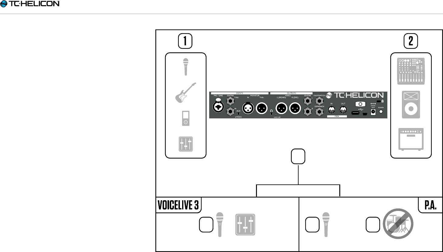 1. Inputs to VoiceLive3 will be to the left of the