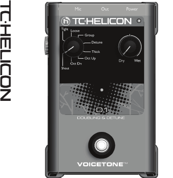 (EN) Introduction VoiceTone D1 thickens your voice with realistic doubling emulations in an easy-to-use pedal. Using TC-Helicon’s refined vocal algorithms, VoiceTone D1 provides that cool unison doubling effect used by successful artists since the dawn of modern recording. We’ve taken the time to create the 8 styles for you. All you do is select one, hit the go button and instantly recreate that sound that was, up to now, the domain only of recording studios.