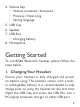4. Volume Key • Volume increased / decreased • Previous / Next song • Setting language 5. USB Cap 6. Speaker 7. USB Pins • Charging battery 8. Microphone Getting Started To use BH60 Bluetooth headset, please follow the steps below: 1. Charging Your Headset Ensure your headset is fully charged and power on before using. The headset comes with a builtin rechargeable battery. It is recommended to fully charge prior to using the headset for the first time.