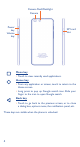 Power key • Press: Lock the screen/Light up the screen. • Press and hold: Show the popup menu to select from Power off/Profile/Reboot/Airplane mode. • Press and hold the Power key and Volume up key to reset. • Press and hold the Power key and Volume down key to capture a screenshot. • Press and hold the power key for at least 10 seconds to force reboot or hold it longer to power off. Volume Keys • In call mode, adjusts the earpiece or headset volume.