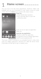 1 Home screen...................... You can move all of the items (applications, shortcuts, folders and widgets) you use most frequently to your Home screen for quick access. Touch the Home key to switch to the Home screen. Status bar • Status/Notification indicators • Touch and drag down to open the notification panel. Touch an icon to open an application, folder, etc. Favourite tray applications • Touch to enter the application. • Long press to move or change applications.