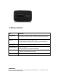 LED description Part Description On/off button Press “Power” key for 3 seconds, to power on/off the terminal device. WPS key Press “WPS” key 3S to activate WPS function. Wi-Fi LED will blink every 2 seconds. If no Wi-Fi user access within 2 minutes, it will automatically exit from WPS mode. LED indicators It shows signal, Wi-Fi, SMS, battery status. Charging/USB Port Charger your device Connect the client to your device via USB cable.