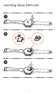 E SOS key Emergency calls: Long press the ‘SOS’ key for at least 3 seconds. F Power key • • • • • • Power on/off. Enter into the volume list. When you have an incoming call, short press to reject the call. On the Home screen, short press to enter the volume mode. On all screens other than Home, short press once to go back. Depress the button for at least 8 seconds to initiate a system reboot. G Microphone H Wristband I SIM slot J Charging port Notes: • The screen will light up by pressing any key.