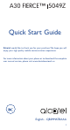 A30 FIERCE™ 5049Z Quick Start Guide Alcatel would like to thank you for your purchase. We hope you will enjoy your high-quality mobile communication experience. For more information about your phone or to download the complete user manual version, please visit www.alcatelonetouch.us.