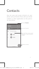 Contacts You can view and create contacts on your phone and synchronize these with your Gmail contacts or other applications on the web or on your phone. Search in Contacts View your favorites Open the Quick contact panel Long press to select contact(s) to delete U3 3G 4049G_4049M_QG_Eng_USA_V2_20170707.