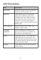 Network Indicator (Red or Blue LED) Wi-Fi Indicator (Blue LED) SMS Indicator (Blue LED) Battery Indicator (Red or Blue LED) LED Description Solid Blue Registered and connected to network. Flashing Blue Network disconnected. Solid Red No network, no SIM card or SIM card error, limited or no service. Wi-Fi Solid Blue Wi-Fi is active. SMS Solid Blue New message Flashing Blue Message inbox is full.