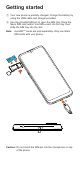 Getting started ① Y our new phone is partially charged. Charge the battery by using the USB cable and charger provided. ② U se the provided SIM pin to open the SIM tray. Place the Nano SIM card and/or microSDTM card into the tray, then slide the SIM tray into the slot. Note: m icroSDTM cards are sold separately. Only use Nano SIM cards with your phone. ro Mic SD SIM 1 SIM 2 SIM SD 2 1 Caution: Do not insert the SIM pin into the microphone on top of the phone.