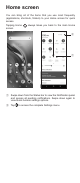 Home screen You can bring all of the items that you use most frequently (applications, shortcuts, folders) to your Home screen for quick access. Tapping Home screen. always takes you back to the main Home ② ① ① S wipe down from the Status bar to view the Notification panel and access all pending notifications. Swipe down again to view Quick Access settings options. ② T ap to access the complete Settings menu.