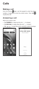 Calls Making a call From the Phone app, use the keypad to enter the phone number, or keyboard to enter the contact name. Then tap to place the call. Answering a call When you receive a call: • Tap ANSWER, or swipe up the icon • Tap DECLINE, or swipe down the icon • Tap to answer; to reject; to reject the call by sending a preset message.