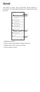 Gmail Use Gmail to create, send, and receive emails directly on your phone. The Gmail app will allow you to add several email accounts. ① ② ③ ④ ① Manage accounts. ②T ap to access email folders, settings, and more. ③ Swipe right or left to archive the email. ④ Tap to create an email.