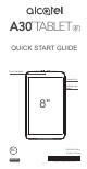 1 Fully charge your device for the first time use. 2 3 Open the cover. Insert the SIM card (left) and MicroSD card (right), then close the cover. Note: Use only micro SIM type card. Using a nano SIM with adapter may damage the tablet or the card may become stuck in the device. SAVE PAPER SAVE TREES User Manual and FAQ are available online www.alcatelonetouch.