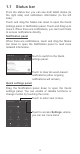 1.1 Status bar From the status bar, you can see both tablet status (to the right side) and notification information (to the left side). Touch and drag the Status bar down to open the Quick settings panel or Notification panel. Touch and drag up to close it. When there are notifications, you can touch them to access notifications directly. Notification panel When there are notifications, touch and drag the Status bar down to open the Notification panel to read more detailed information.
