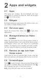 2 Apps and widgets 2.1 Apps The Apps list contains all pre-installed and new applications. To access the Apps list, touch the all apps key from Home screen. 2.2 Widgets By long pressing an empty area in the Home screen, you can switch to widget interface mode. 2.3 Get more apps Touch the Google Play Store icon applications. 2.