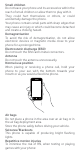 Product safety information Pictograms and graphic symbols ead the Safety & warranty information R guide Do not use while re-fuelling Do not use hand-held while driving This device may produce a bright or flashing light When using the phone, make sure it is kept at least 10 mm away from your head or body Do not dispose of in a fire Small parts may cause a choking hazard Avoid contact with magnetic media This device may produce a loud sound Avoid extreme temperatures eep away from pacemakers and other K per
