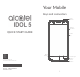 Help To get help: • View user manual and FAQ Visit http://www.alcatel-mobile.com • Update your phone's software Open the Updates application to check software updates. • Back up your personal data Go to Settings > Backup & reset > Back up my data and turn it on. • Reset your phone Go to Settings > Backup & reset > Factory data reset, and then touch RESET PHONE. To get more info, you can access the Phone Guard > Support Center application.