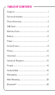 TABLE OF CONTENTS Support...................................................................... 1 Service Activation.................................................... 1 Phone Overview....................................................... 3 SIM Card.................................................................... 4 Memory Card............................................................ 6 Battery........................................................................ 6 Power.............................