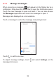4.1.1 Manage messages When receiving a message, will appear on the Status bar as a notification. Drag down the Status bar to open the Notification panel. Touch the new message to open and read it. You can also access the Messages application and touch the message to open it. Messages are displayed as a conversation. Touch a message to enter the message composing screen: Touch to call the number; To adjust message settings, touch message list screen.