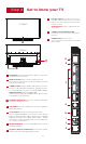 Step 4 Get to know your TV A TV FRONT STATUS LIGHT Glows when the TV is in standby, flashes when the TV is busy, flashes once with each button pressof the remote control. IR RECEIVER Receives signal from the TV remote. A B POWER and OPTIONS BUTTON Found on the corner of the TV back for easy use. C POWER PORT Connect your TV to the power source with the included power cable. TV BACK C D E RESET B D E F ETHERNET Connect an Ethernet cable to your home Internet router or switch.