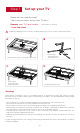 Step 1 Set up your TV Ready for the step-by-step? You’re only minutes away from TV bliss! Remove your TV from the box Be careful, it’s heavy! To use the stand To prevent damage to the screen, carefully place your TV on a soft, cushioned surface. B A Insert Screws 65Q825: M5X16mm 3 75Q825: M4X16mm 3 Remove plastic cover to access holes for TV stand. D C Insert Screws 65Q825: M5X16mm 4 75Q825: M5X20mm 4 Re-attach the plastic cover Warning: Never place a television set in an unstable location.