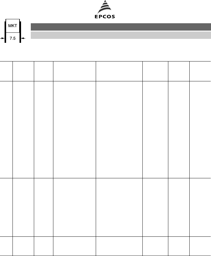 Ordering codes and packing units (lead spacing 7.5 mm)