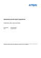 B43740, B43760 Extra long useful life 105 °C Terminal Dimensions (mm) with insulating sleeve d l ±1 l1 ±1 l2 +0/ 1 d1 d2 max. a +0.2/ 0.4 Approx. weight (g) M6 M6 M6 M6 M6 91.0 +0/ 2 91.0 +0/ 2 91.0 +0/ 2 91.0 +0/ 2 91.0 +0/ 2 17.7 17.7 17.7 17.7 17.7 1200 1400 1650 1750 1900 144.5 170.0 191.0 202.0 221.0 149.8 175.3 196.3 207.3 226.3 17 17 17 17 17 M12 M12 M12 M12 M12 31.7 31.7 31.7 31.7 31.7 For low-inductance design the following deviation applies: d = 64.3 mm: l1 0.7 mm d = 91.