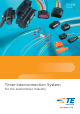 T E AU TO M OT I V E Page Timer Interconnection System 2-10 ✓ Introduction 2-3 ✓ Micro Timer I – Receptacle Contacts 2-4 ✓ Introduction Contact Systems Micro Timer II and Micro Timer III Receptacle Contacts 2-5 – 2-6 Tab Contacts 2-7 – 2-8 Single Wire Seals and Sealing Plugs 2-9 ✓ ✓ ✓ Junior Timer Receptacle Contacts 2-11– 2-12 ✓ Junior Power Timer Receptacle Contacts Tab Contacts Asymmetric 2-13 – 2-15 2-16 Tab Contacts Symmetric 2-17 – 2-18 Tab Contacts Side Feed 2-19 Single Wi