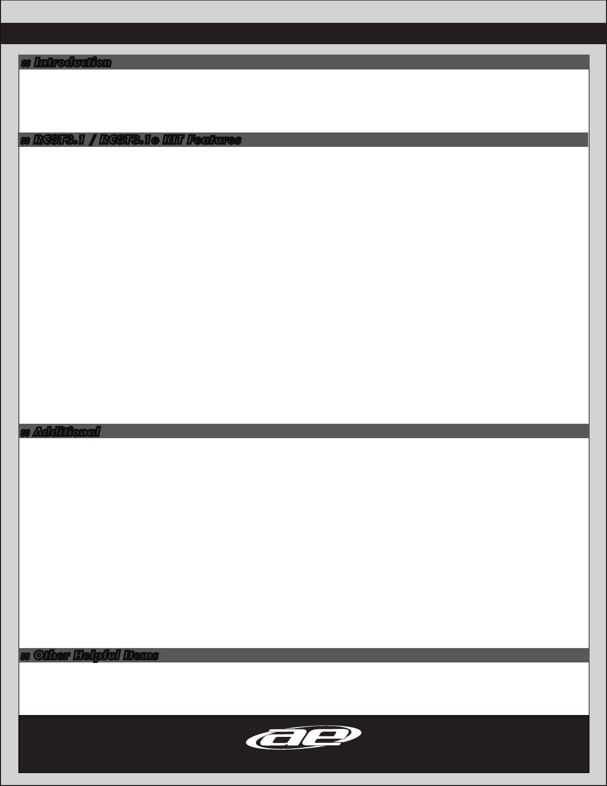 maintaining your new RC8T3.1/RC8T3.1e Kit. Please take a moment to read through this manual to help familiarize yourself with
