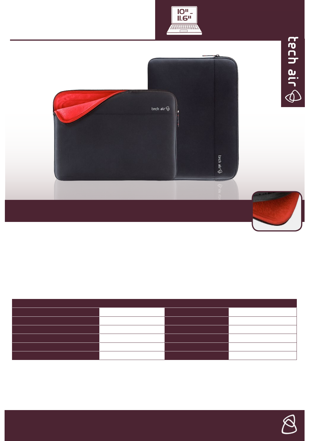 The Techair Neoprene Plus sleeve offers great protection for 10” - 11.6” Tablets and
