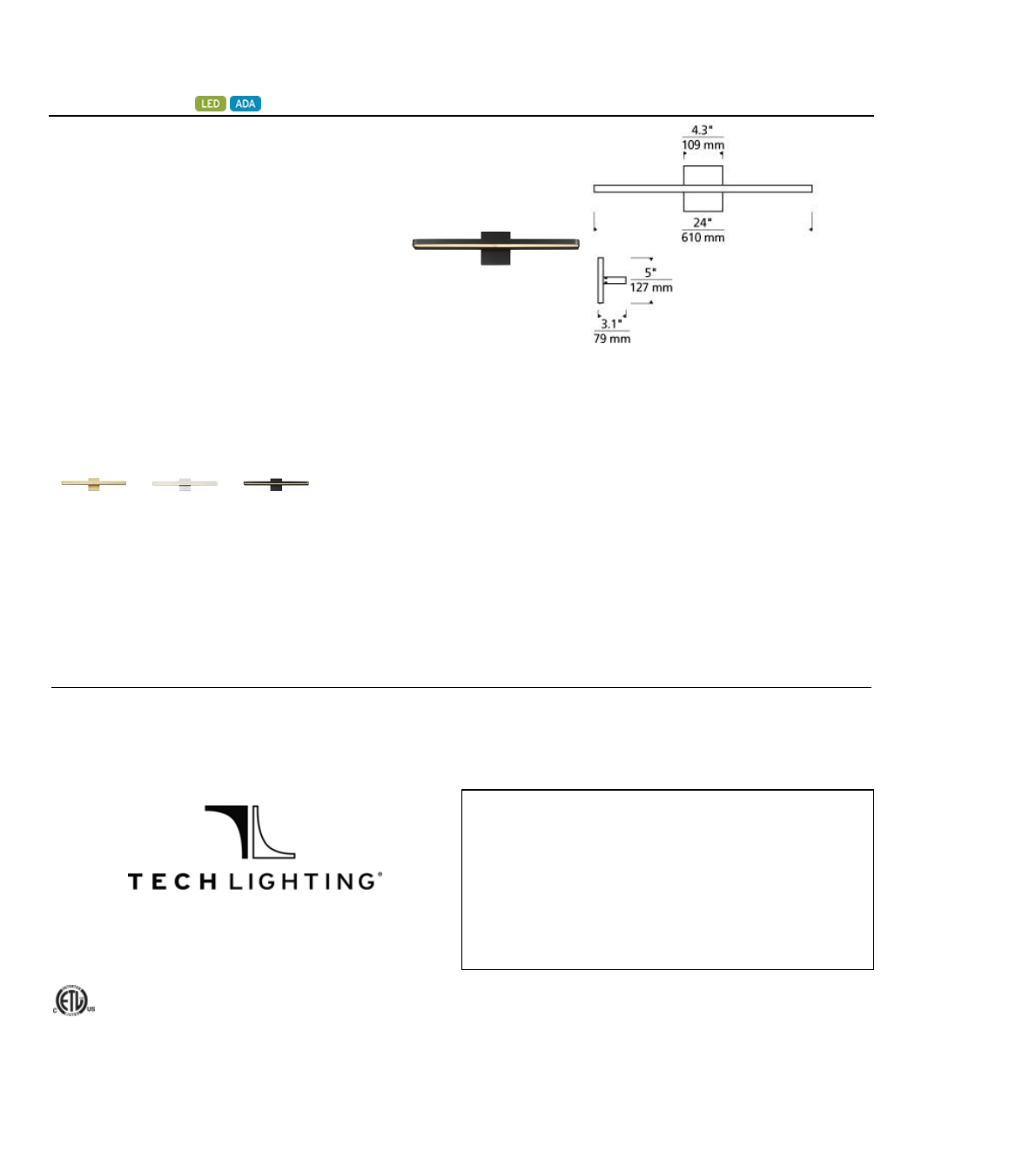 TechLightingreservestherighttochangespecificationsforproductimprovementswithoutnotification.