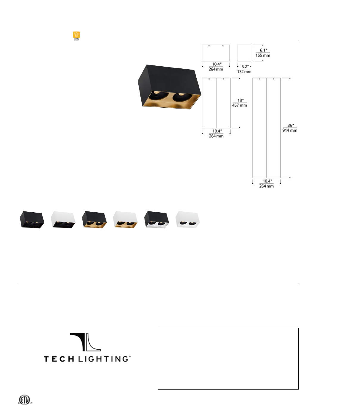 TechLightingreservestherighttochangespecificationsforproductimprovementswithoutnotification.