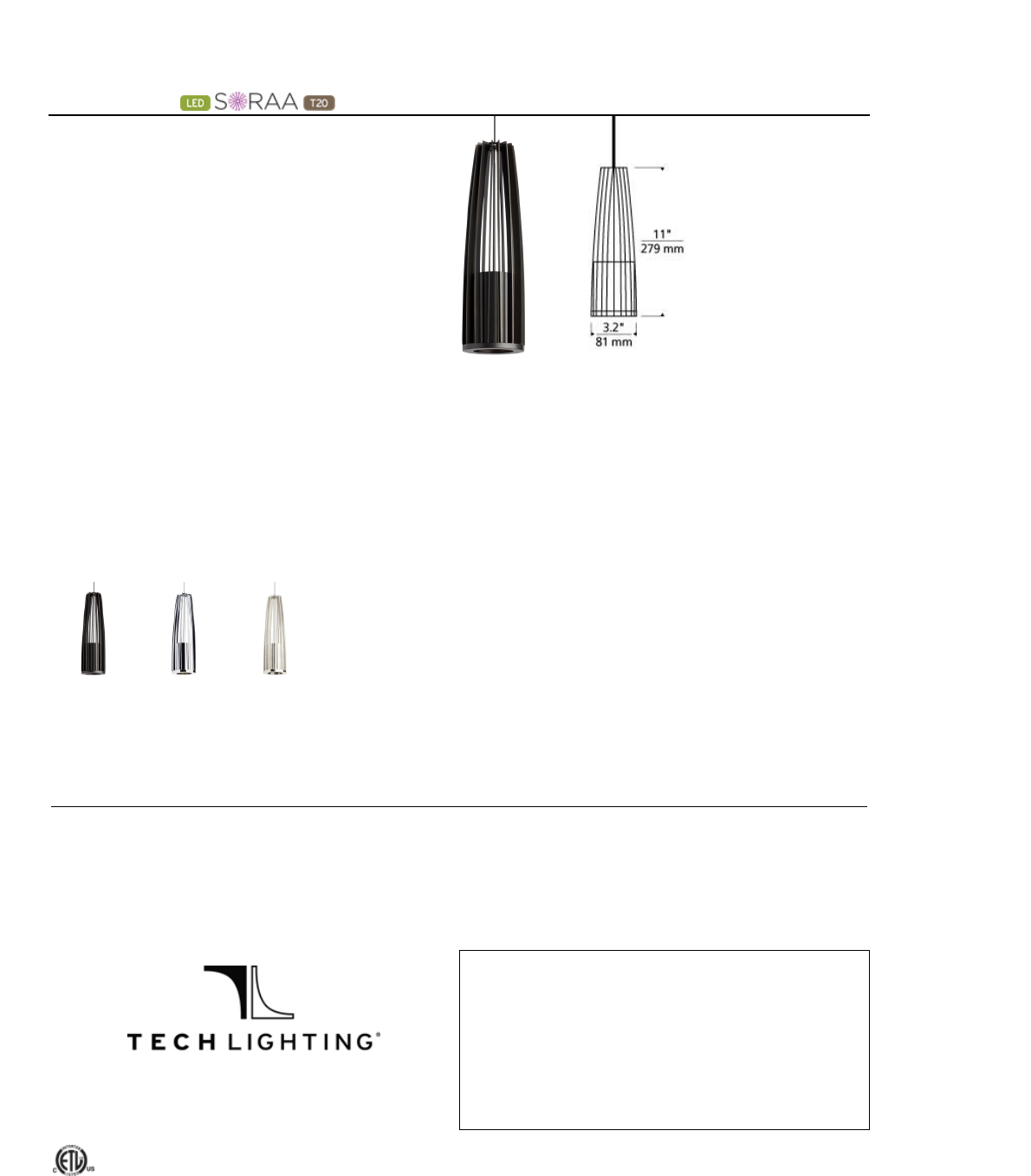 TechLightingreservestherighttochangespecificationsforproductimprovementswithoutnotification.