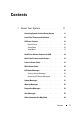 Contents 1 About Your System . . . . . . . . . . . . . . . . . 11 . . . . . . 11 . . . . . . . . . . 12 LCD Panel Features . . . . . . . . . . . . . . . . . . . 15 Home Screen . . . . . . . . . . . . . . . . . . . . 16 . . . . . . . . . . . . . . . . . . . . 16 . . . . . . . . . . . . . . . . . . . . . 17 Accessing System Features During Startup Front-Panel Features and Indicators Setup Menu View Menu Hard-Drive Indicator Patterns for RAID . . . . . . . . . 18 . . . . . . . . . .