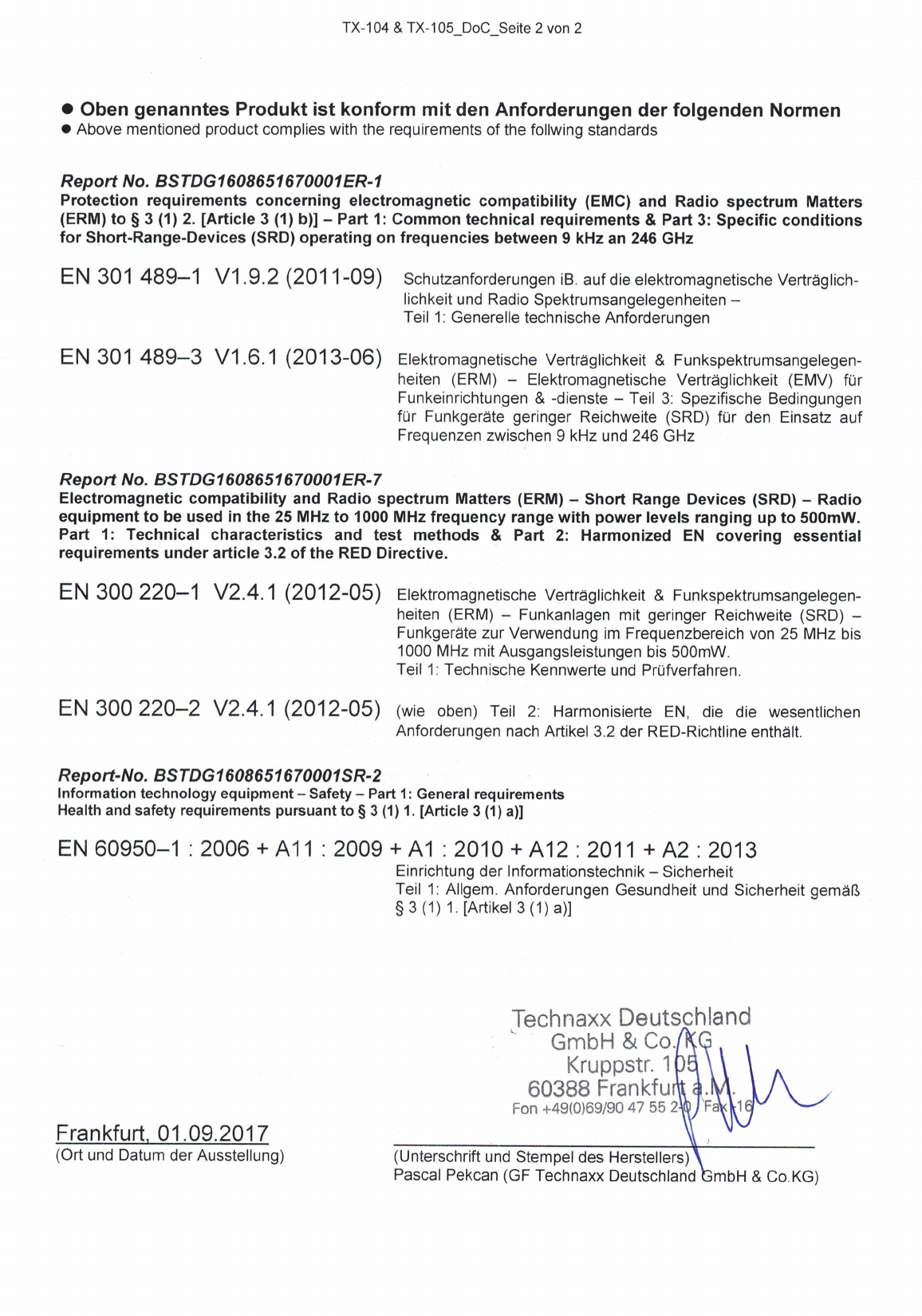 Declaration of conformity