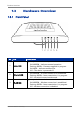 Product Overview 1.3 1.3.1 Hardware Overview Front Panel 1 2 3 4 5 6 No. LED Description Lights up when the device is powered on. 1 Power LED 2 Ethernet LED • • • • Solid GREEN – Indicates normal operation. Flashing GREEN – Firmware upgrade in progress. Solid RED – Indicates malfunction. Off – The device is powered off. • • • Solid GREEN – A wired connection is established. Flashing GREEN – Data transmission is in progress. Off – No wired connection detected.