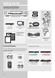 Getting Started Unpacking the DVD Receiver You should receive the following items: SOURCE SURROUND mp3 D I G I TA L BAND/APP TREBLE RPT/PGM VOLUME + TV POWER / ECO PRESET - PRESET + TUNE - TUNE + + PHONES One DVD receiver unit One external AM loop antenna One Pig-Tail antenna wire - SAT/ CAB VIDEO/ VCR One pair of “AA” batteries one video cable (single wire) with yellow RCA connectors; • one instruction book; • one safety leaflet; • one Quick Connection Guide one SCART cable; Unpac