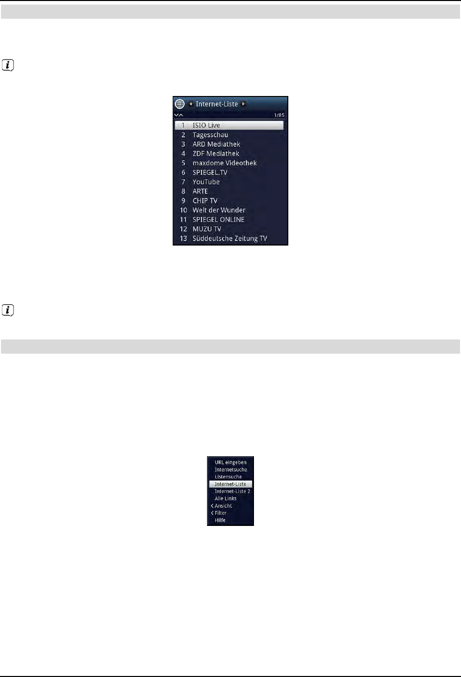 Internetlisten. Sie können alle Ihre nach Punkt 13 konfigurierten Favoritenlisten