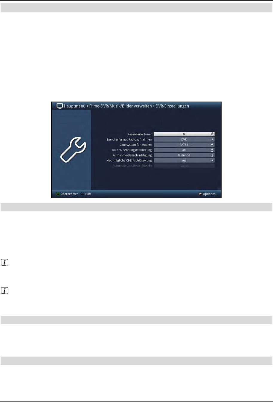 Entschlüsselung von DVR-Aufnahmen verschlüsselter Sender de-/aktivieren sowie Tuner