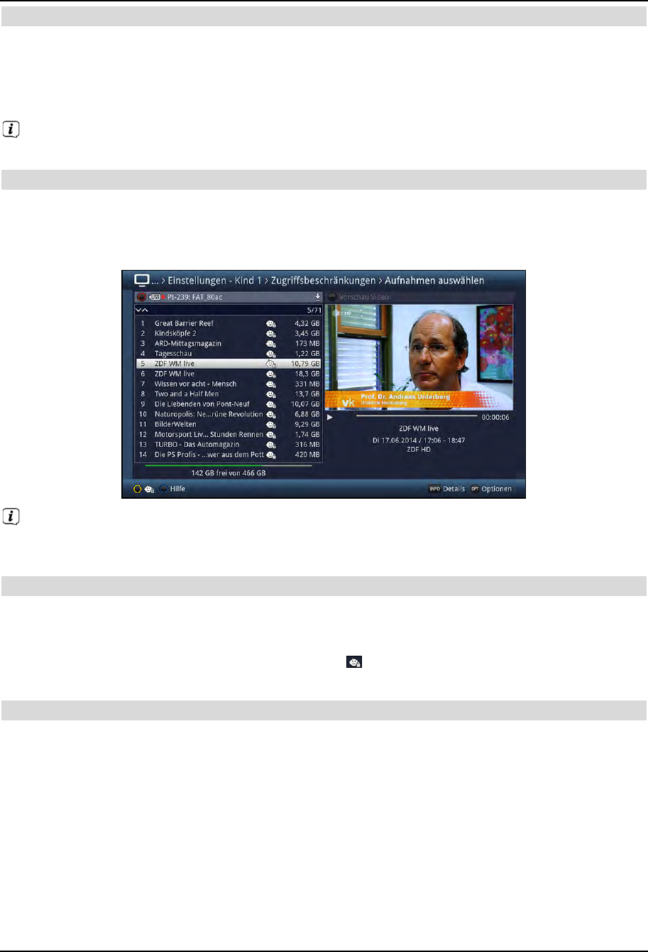 Unter diesem Punkt können Sie die Funktion Filme/DVR-Aufnahmen für den Nutzer