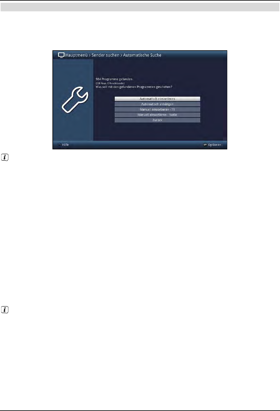 Nach dem Suchlauf erscheint eine Meldung auf dem Bildschirm mit der Angabe, wie viele