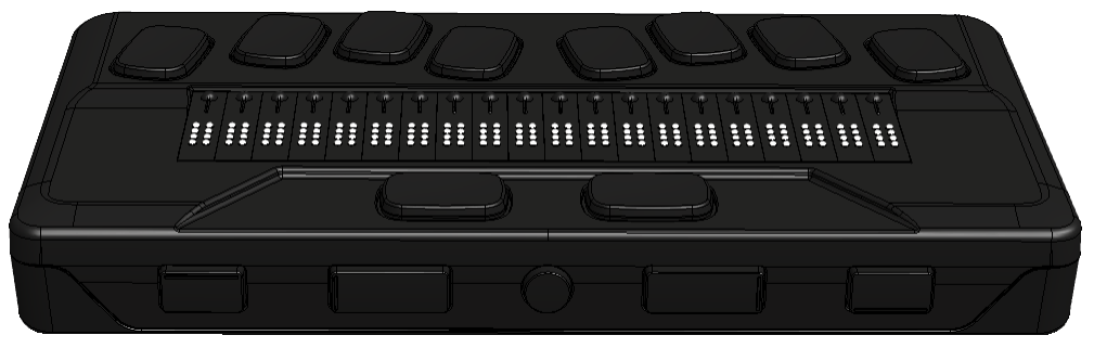 Orientation and Description With the device on a flat surface in front of you, the proper operational orientation is with the braille cells closest to you. The top surface includes the braille display and the braille keyboard. Beginning with the braille cells (closest to you) and moving away from you are the small round Cursor Routing buttons, located just above the braille cells. You use the routing buttons to move the braille cursor when reading and editing and to activate items in a menu.