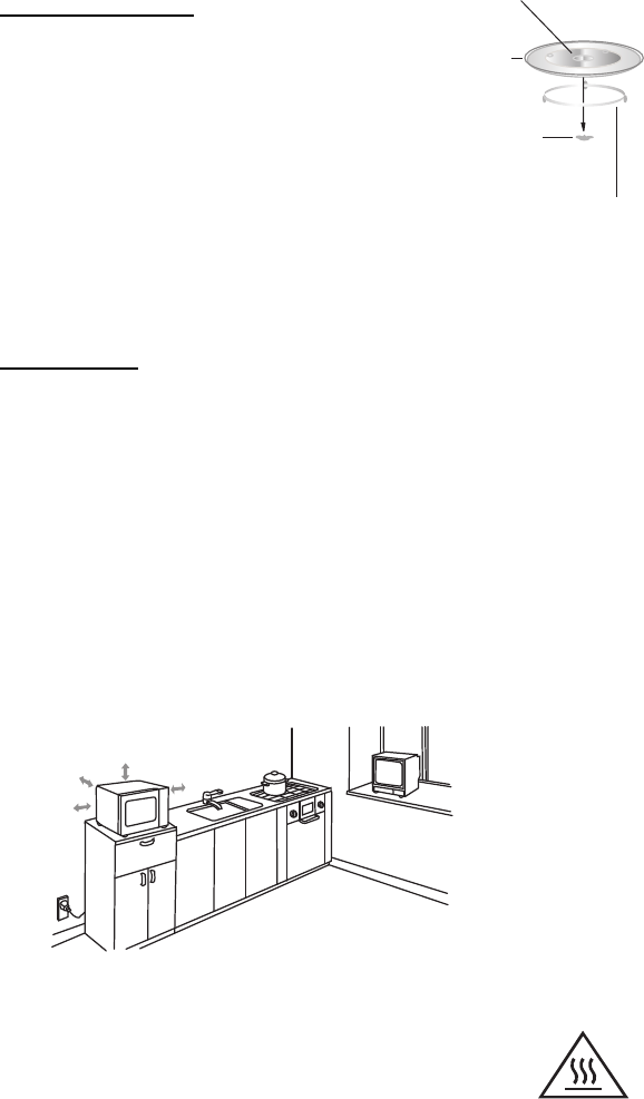 Plaats de schotels en het voedsel steeds om de glazen draaiplateau.