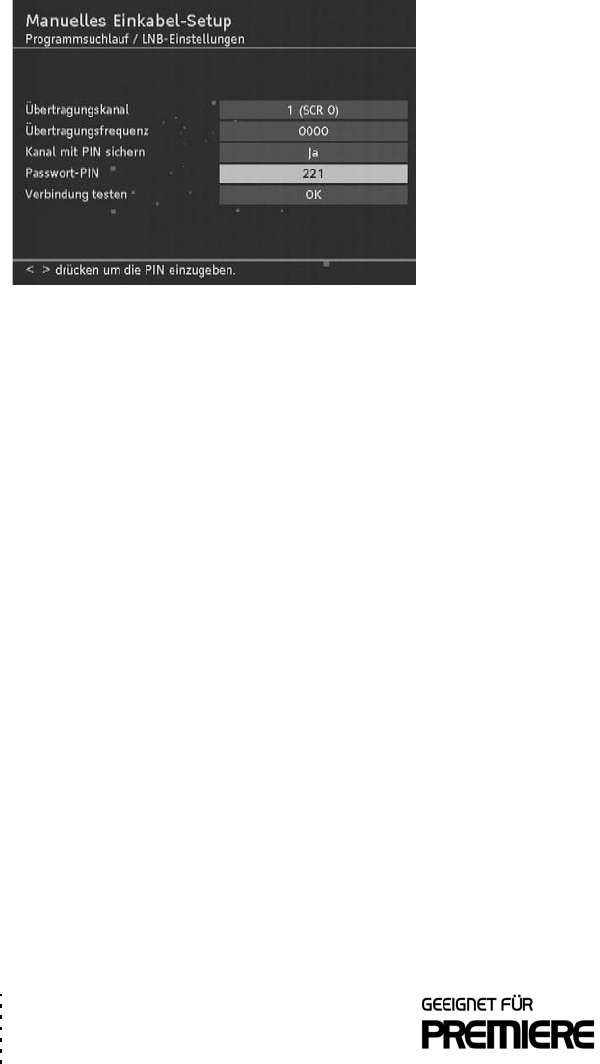 –Die Passwort-PIN kann nur vergegeben werden, wenn Sie bei Kanal