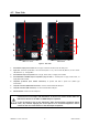 4.2 Rear Side 8 8 7 7 3 5 6 2 1 4 5 3 6 2 1 EXA 2.6-3.2 EXA 1.1-1.5-2.2 Figure 2 – Rear Side 1. Grounded AC Input power socket: IEC C14 type; to connect the UPS to the AC utility line. 2. Input fuse: electrical specification: max current 6A (EXA 1.1–1.5), max current 8A (EXA 2.2) or max current 10A (EXA 2.6-3.2), voltage 250 V. 3. Grounded UPS Output receptacles: IEC C13 type, black colour, to supply critical loads. 4. Grounded ONLY FILTERED Output receptacles (only for EXA 1.1-1.5-2.