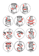 Description a GB b Motor unit a1 : Motor unit slow speed a2 : Motor unit fast speed a3 : Speed selector: Pulse position (intermittent operation) -0-1-2 c ACCESSORIES DEPENDING ON MODEL: d Multi-purpose blade e Emulsifying disk f Vegetable cutter inserts A : Fine grater D : Fine slicer C : Coarse grater G : Pamesan grater H : Thick slicer E : Chip cutter g Insert supports for vegetable cutter inserts h Blender jug h1 : Measuring cap h2 : Lid h3 : Bowl i j k l Chopping bowl assembly b1 : Food pusher w