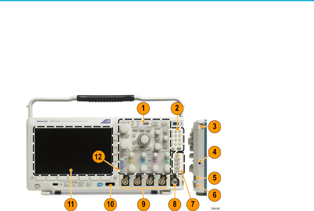 9. Analog channel (1, 2, (3, 4)) inputs with TekVPI versatile probe interface