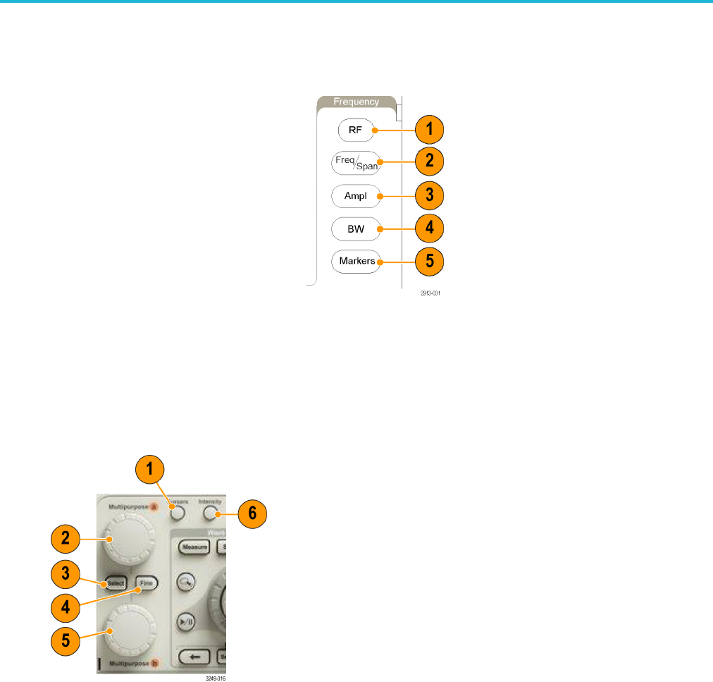 These buttons configure the acquisition and display of the RF input.