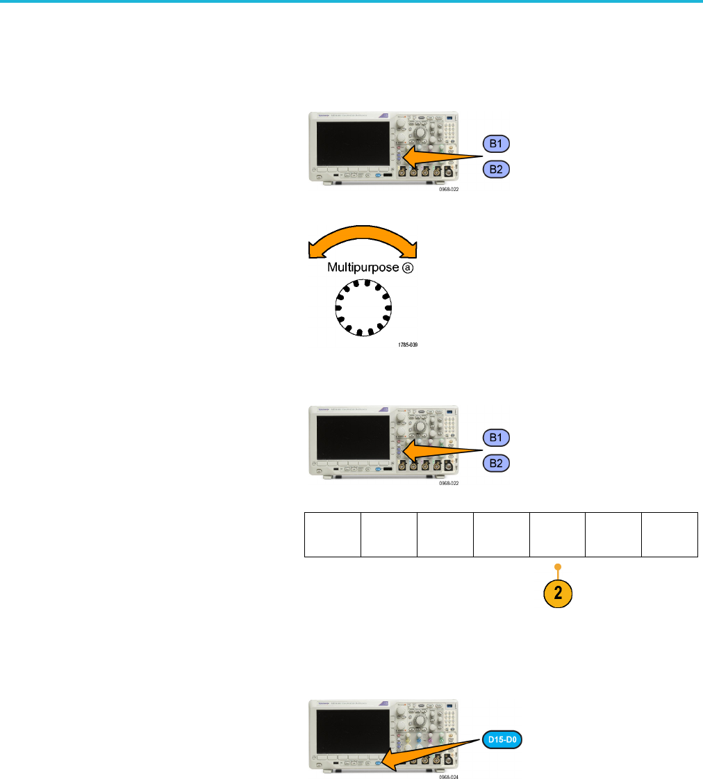 Positioning bus signals. Push the appropriate front panel bus button and turn the M ultipu rpose a knob to adjust the